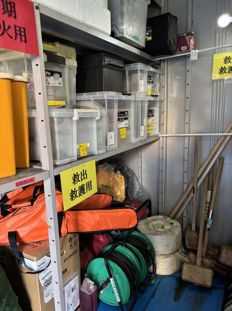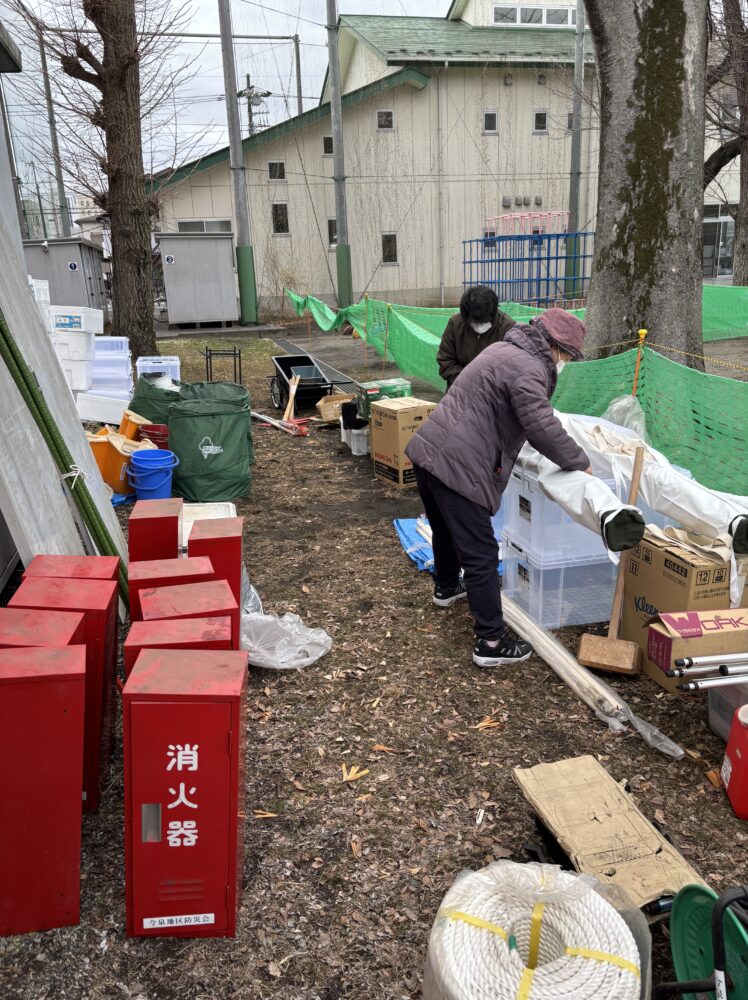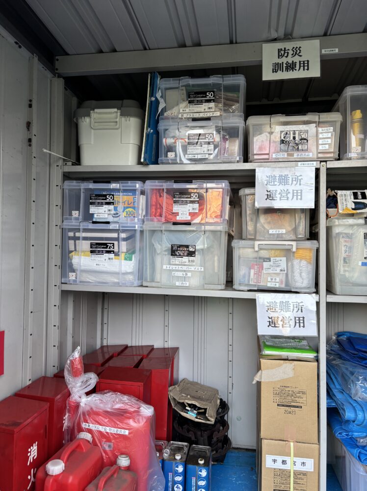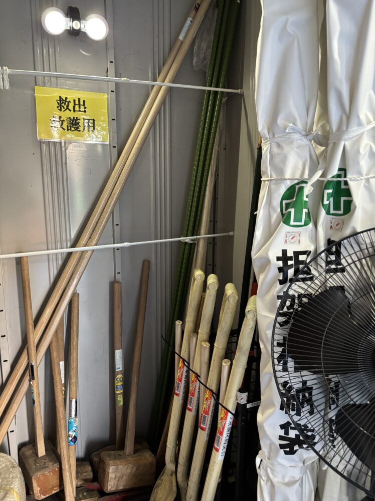 2月26日(木)、今泉地区防災会・防災委員会にて小学校校庭にある防災庫の整備をしました。庫内の物品を全部出し、「救助救出用」「情報収集用」「初期消火用」「給食給水用」「避難所運営用」などの用途別に分けて、非常時に誰が見ても物を取り出しやすいように収納し直しました。また、夜でも庫内を見渡せるようにライトを設置、担架を担架袋に入れてわかりやすくし、また、チェーンソーをケースに入れるなど危険な工具を安全に収納しました。本事業は、赤い羽根とちぎ「そなえる・ささえる」特別助成を受けて行われています。地域とのつながりづくりから、NEO今泉のご協力もいただきました。今泉地区防災会・防災委員会では引き続き今後も、災害への備えと防災をきっかけとした地域のつながりづくりの活動を行っていきたいと思っています。